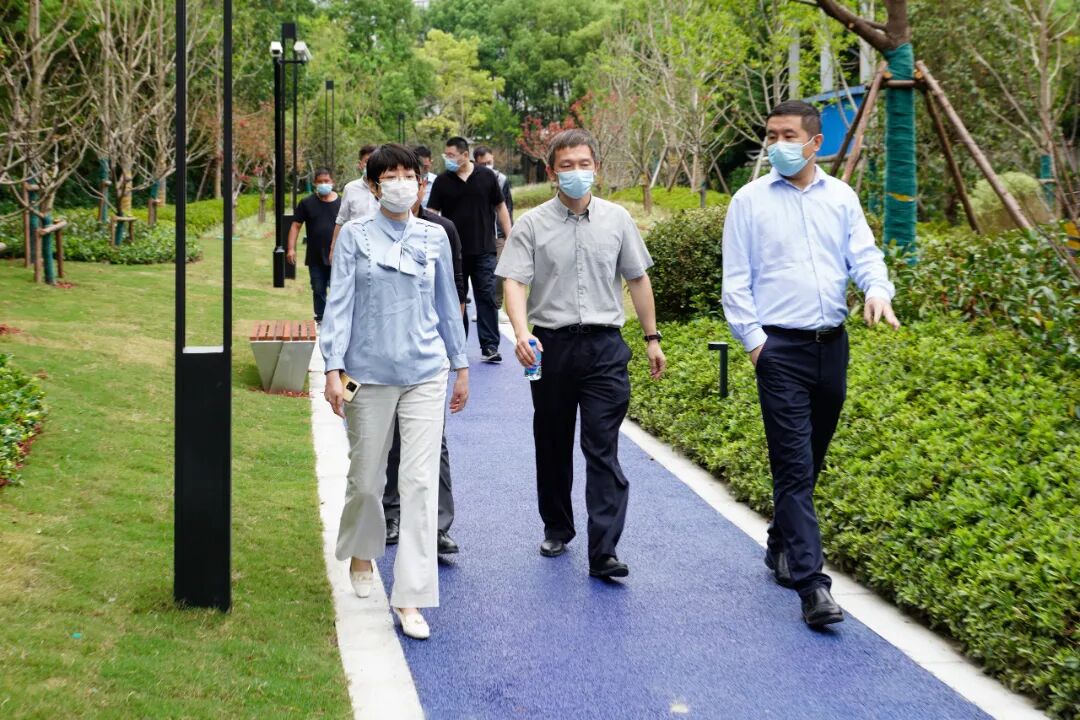 最后,集团领导一行来到位于江场西路南侧,由铁路南何支线遗留的铁轨改建而成的慢行步道,对绿化景观、塑胶步道及配套设施进行检查,近1万方的绿地和步道将对外开放,为园区白领又增添了一处休闲放松的“好去处”。